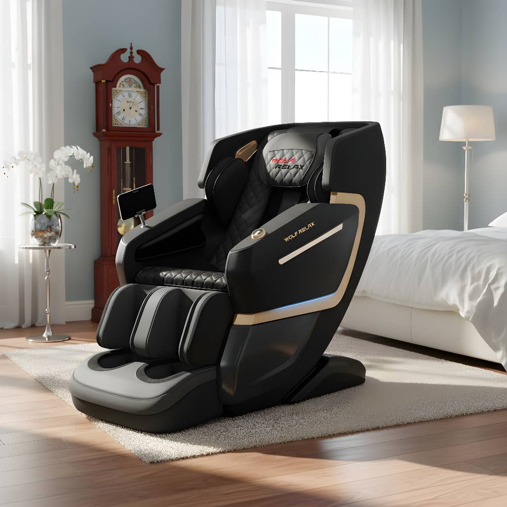 صندلی ماساژور برند ولف ریلکس با ماساژ 4 بعدی و ریل 143 سانتی متری برای ماساژ کل بدن مدل WOLFRELAX A082