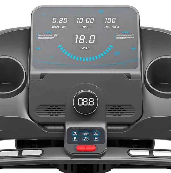 پارامترهایی مانند سرعت، مسافت، زمان، کالری، ضربان قلب و Body Fat بر روی نمایشگر LCD این دستگاه دیده میشود. اگر به برنامه از پیش تعیین شده روی تردمیل علاقه دارید میتوانید از 12 برنامه موجود بر روی این ابزار بهره ببرید. همچنین میتوانید برنامه دلخواه خود را برای ورزش تعریف کنید. بر روی این وسیله پورتهای مهم AUX و USB قرار گرفته و امکان گوش دادن به موسیقی در زمان تمرین فراهم شده است.
